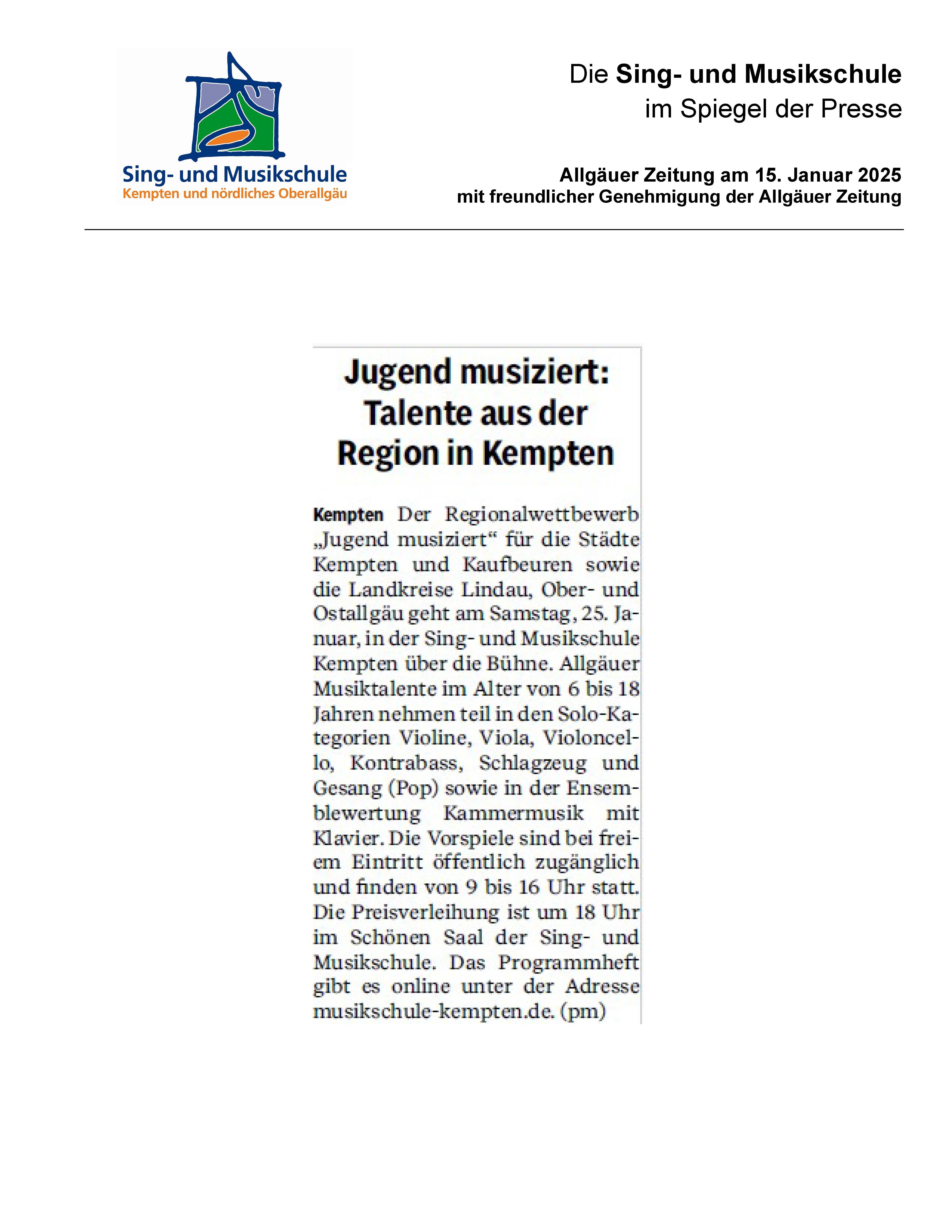 Januar 2025AZ_28_01_25_Jugend musiziert_Talente_kommen_weiterextra_22_01_25_MusizierstundeAZ_21_01_25_Digitale_KunstKreisbote_18_01_25_GeburtstagskonzertAZ_17_01_25_Neujahrsempfang_OBAZ_15_01_25_Ankündigung_Jugend musiziert_Regionalwettbewerbextra_15_01_25_Musizierstunde
